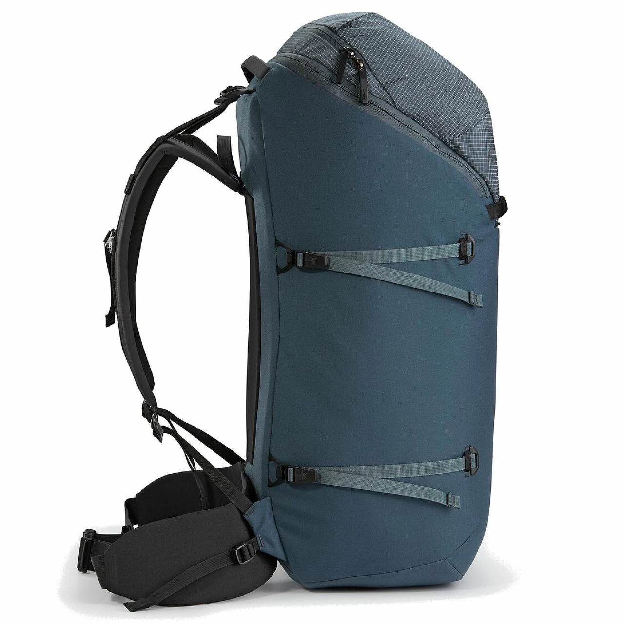 Great on the approach and at the rock, sized for cragging and big enough for trad, the versatile Arc’teryx Konseal 55 is designed for a comfortable carry and clean workflow. Made with a 690D Cordura® with a Hadronâ„¢ LCP (liquid crystal polymer) grid lid, it’s highly abrasion resistant. Carry comfort comes from its supportive frame and ergonomic hipbelt and shoulder straps. Access is easy with the stand-up design, wide top opening, no-spill lid, and high-visibility interior. Removable compression straps secure the load, internal padding protects gear, and it’s perfectly shaped for the Arc’teryx Ion Rope Bag (sold separately).