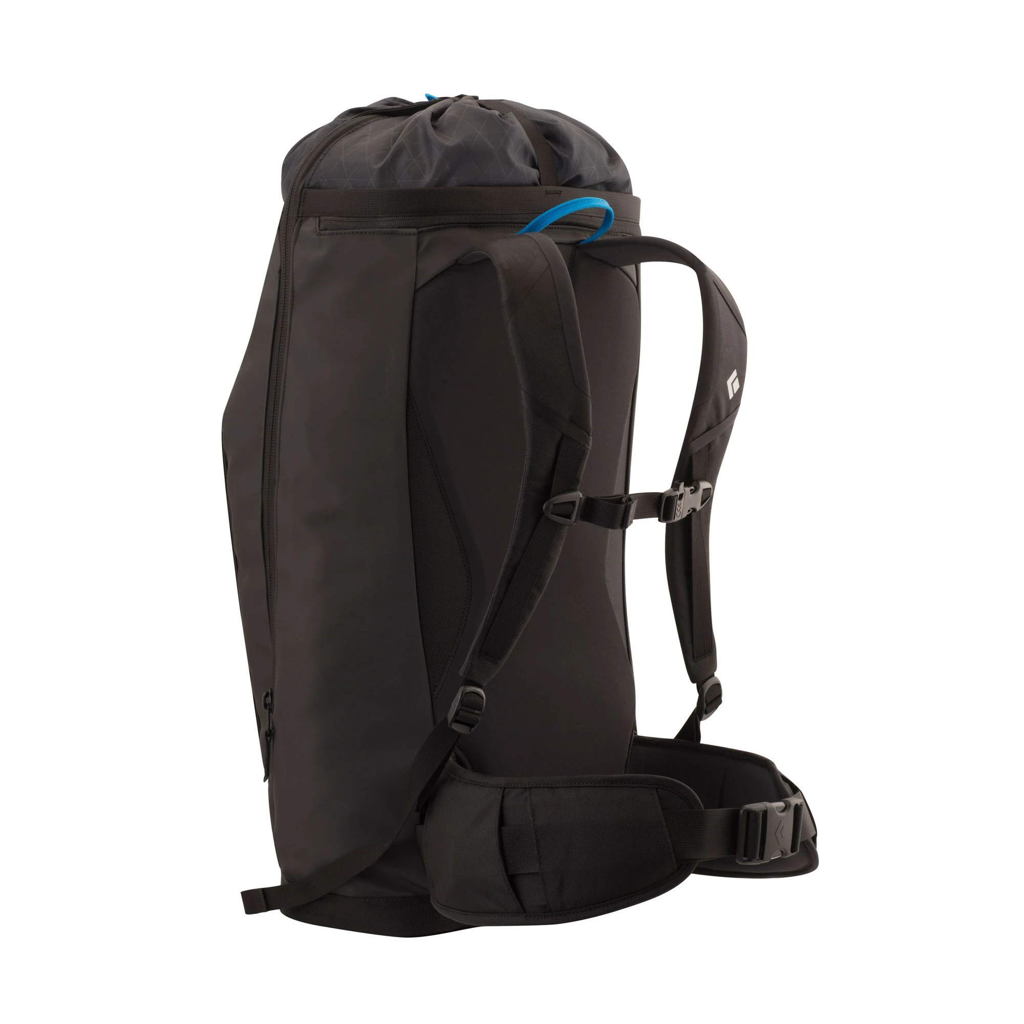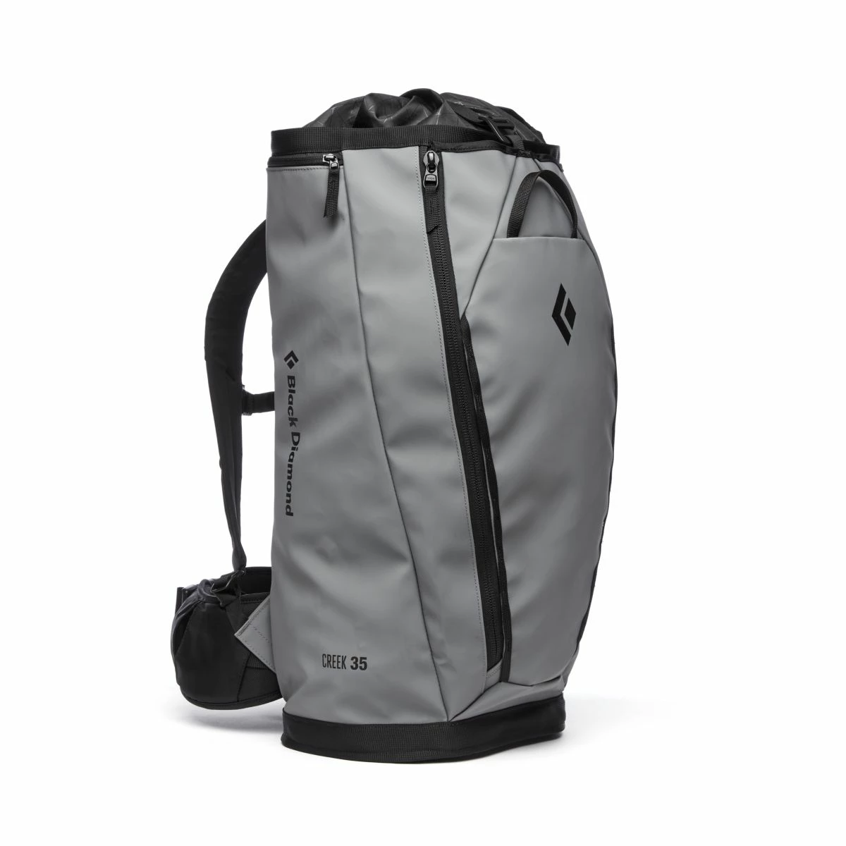 The Creek 35 from Black Diamond is a waterproof cavernous top-loading crag pack inspired by haul bags with a focus on access and durability. Built from durable, waterproof haul-bag fabric, the Creek 35 features a stand-up bottom and full-length side zip for easy loading and access to your gear. A large zippered front flap stashes your flip-flops, lunch and layers, while internal zippered organizer pockets accommodate your keys, phone and other small essentials. A tuck-away rope strap secures your cord, and the stowable rain hood doubles as a helmet holder.
