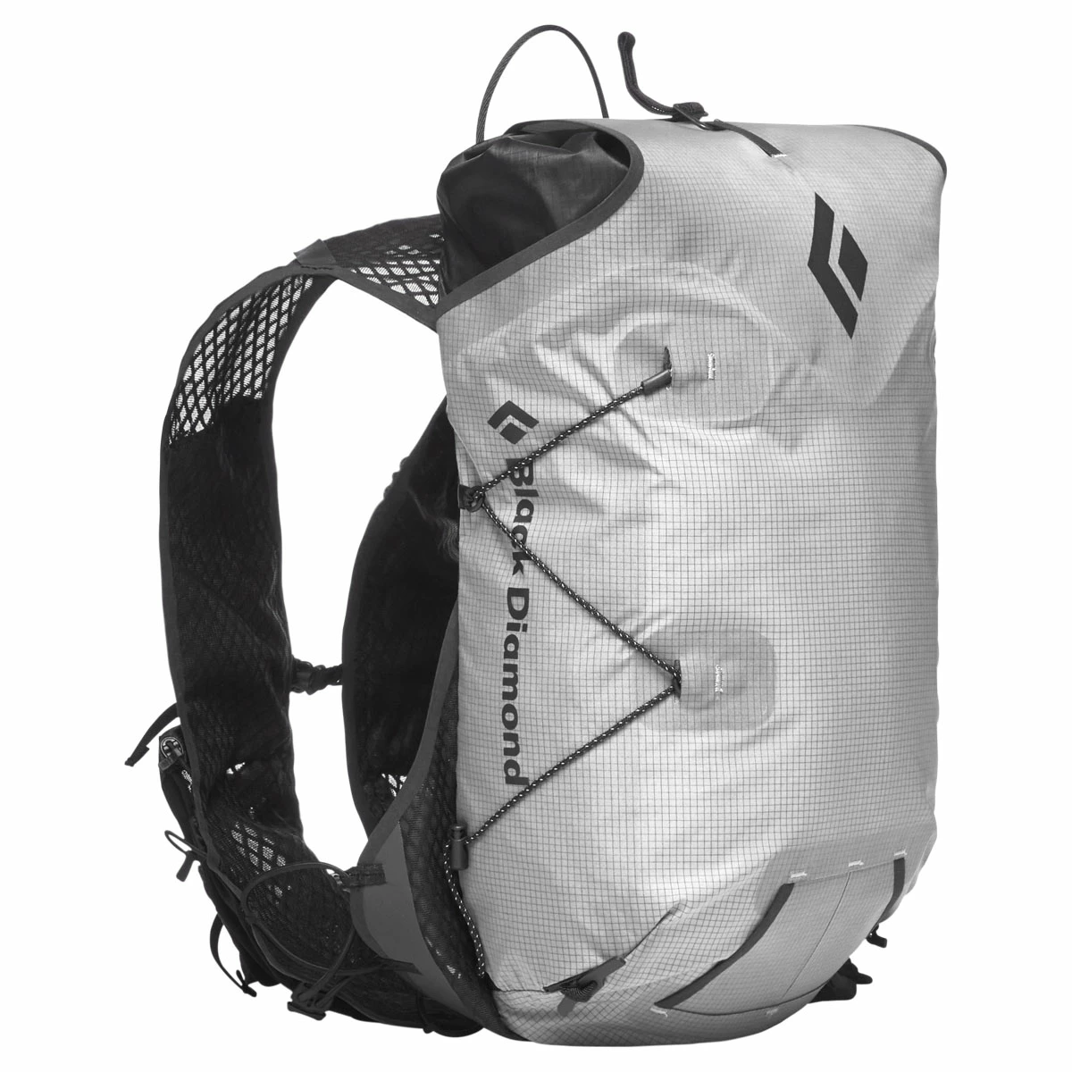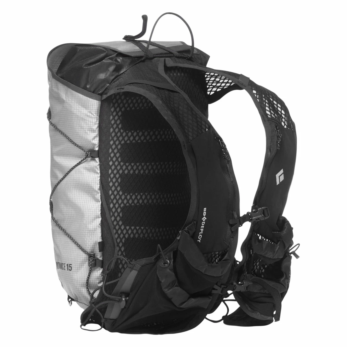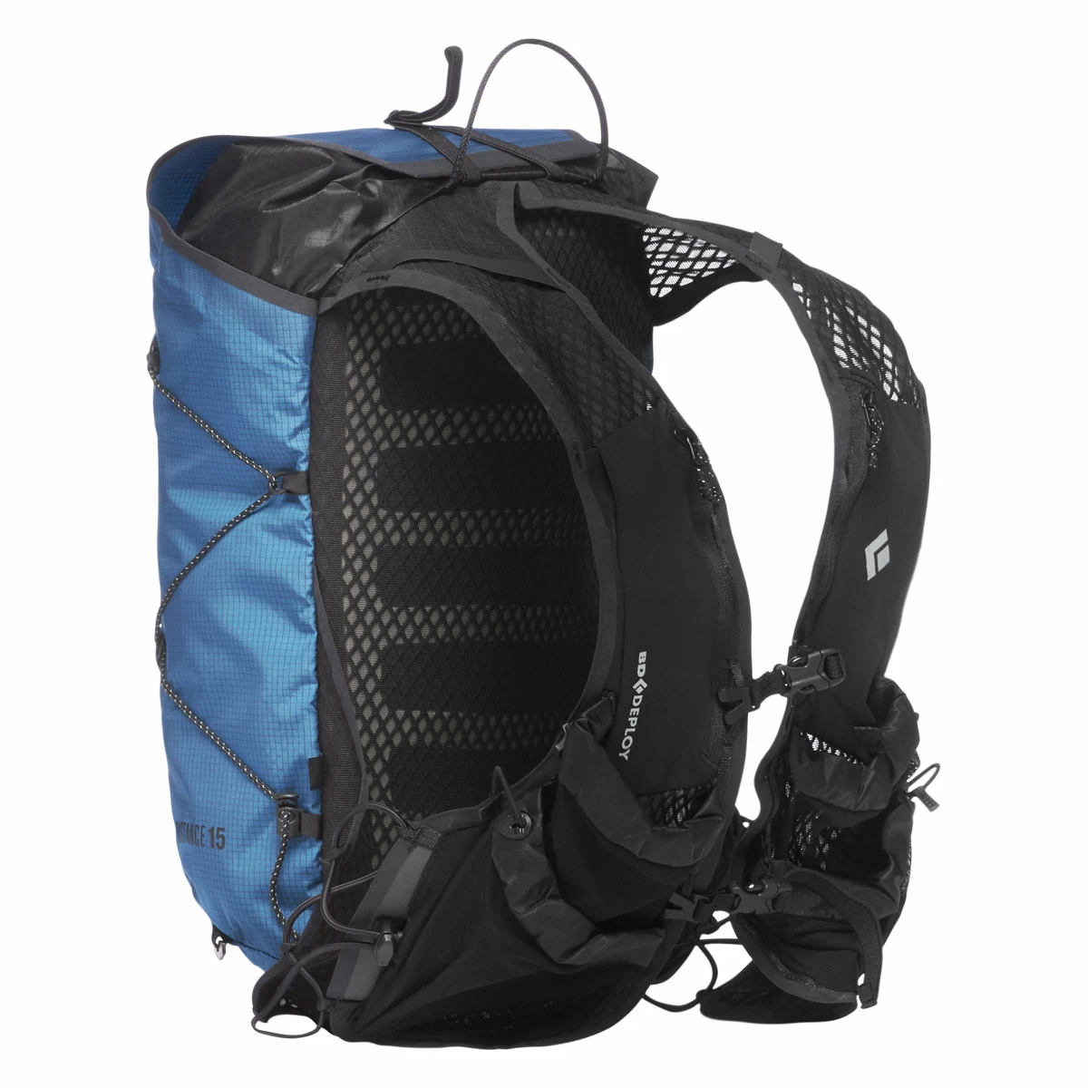 The Distance 15L Pack is engineered to redefine your line, from the trail runs that bleed into rocky scrambles, to alpine adventures that cover a wide spectrum of mountain terrain, this hybrid pack blends running vest technology with BD’s intimate knowledge of alpine pack systems to carry the gear you need, while remaining featherweight and comfortable enough to move at a fast clip. Built from BD’s UHMWP 10x Ripstop Yarns—the same burly material used in climbing dogbones and Ultralight Camalots—the Distance’s fabric is literally 10 times stronger than steel per weight, while remaining so light it floats in water. The shoulder strap harness system utilizes Stitch-less Edge Taping Technology—meaning the shoulder strap edge binding is fully edge-taped instead of sewn, which allows for superior comfort, movement, and weight reduction. Also, the harness system is constructed with an adjustable, elastic-cording side compression system, which gives you a more secure ride while running scrambling and climbing. This vest-like system also includes dual flask pockets that fit two HydraPak® SoftFlasksâ„¢ (sold separately) and a Deploy pocket to stash the BD Deploy Wind Shell (also sold separately).