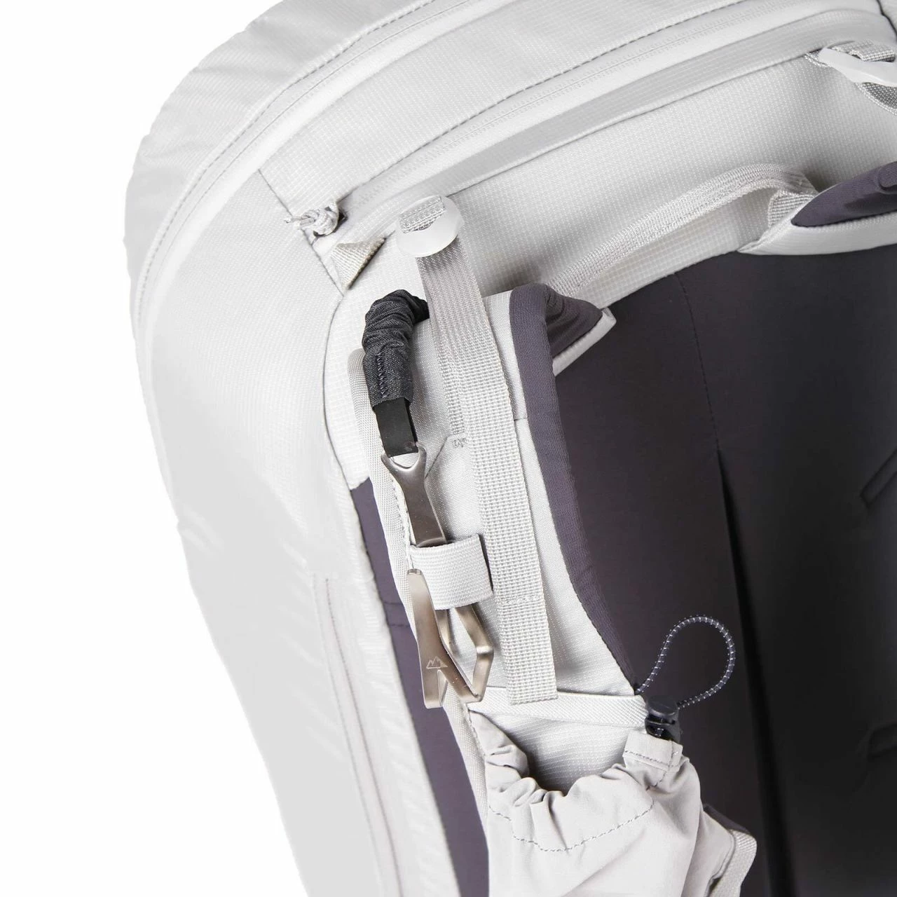 Inspired by skimo racing systems, the Blue Ice Quick Ski Carry Kit enables to load your skis on the backpack without removing the bag from your shoulders.