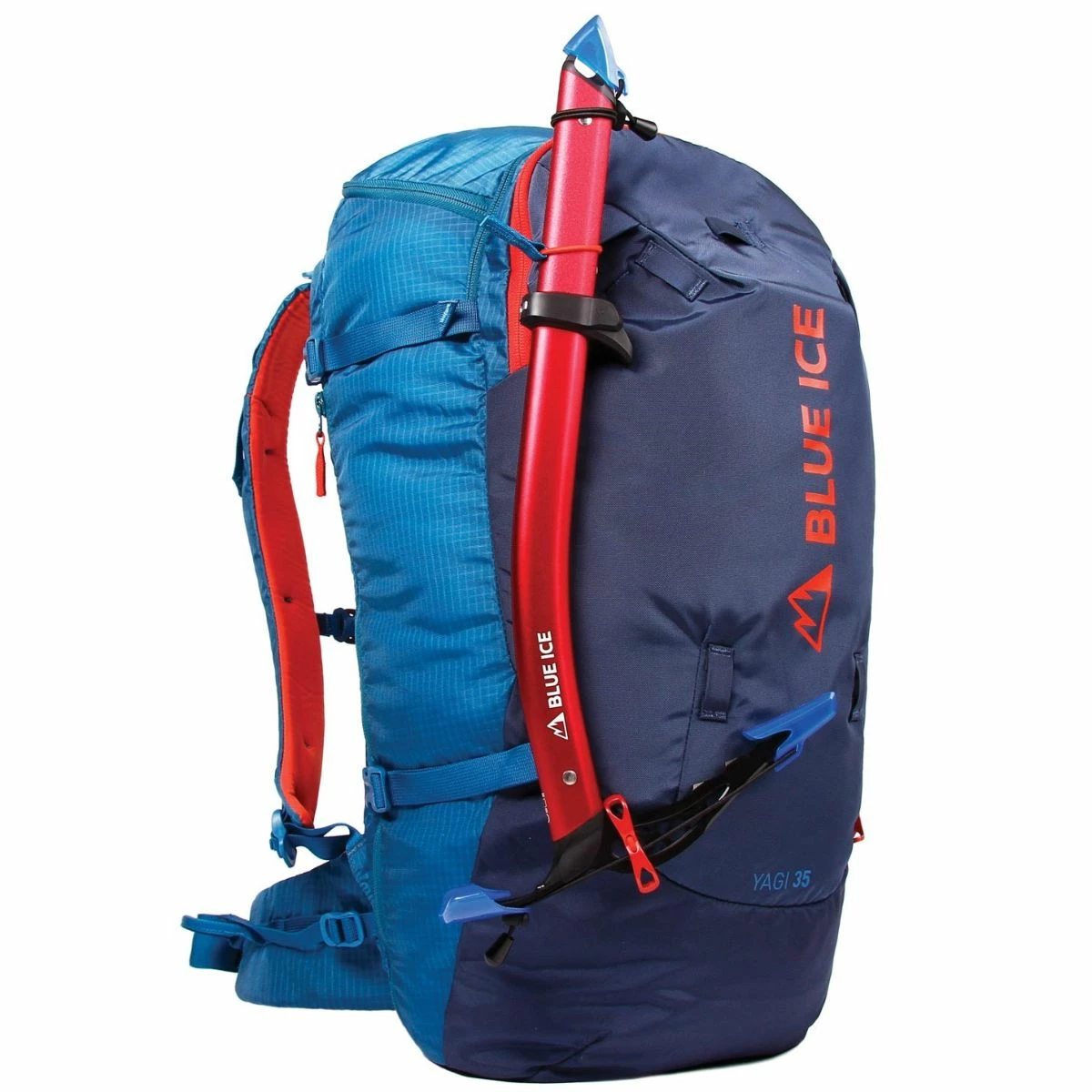 Designed for longer days in the backcountry, the Blue Ice Yagi 35L can keep up with you from dawn till dusk. The top zipper design allows for easy loading, the self-locking side zip allows for quick access. You now also have the carry option of diagonal, A-frame and speed-carry systems. The additional 10 liters will also free you of the internal debate whether or not to bring that extra puffy or gloves. This true 35L liter volume offers an additional 6L that provides you more room for long days.
