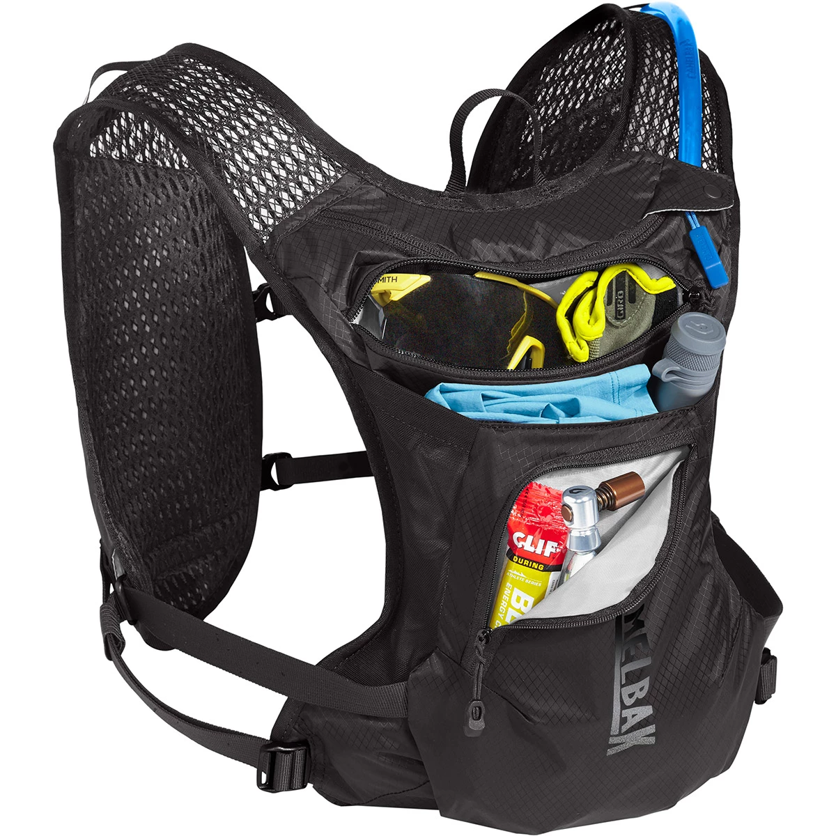 The CamelBak Chase Bike Vest is designed for those who want a minimal approach to carrying gear on the trails without sacrificing hydration or performance. Pack lighter and ride faster with focused features like quick access front harness and stretch overflow pockets. Stay cool and hydrated with 3-D vent mesh and the 1.5-liter fast-flow Cruxâ„¢ reservoir. This minimalist vest is thoughtfully engineered to take your mind off your gear so you can focus on the ride.