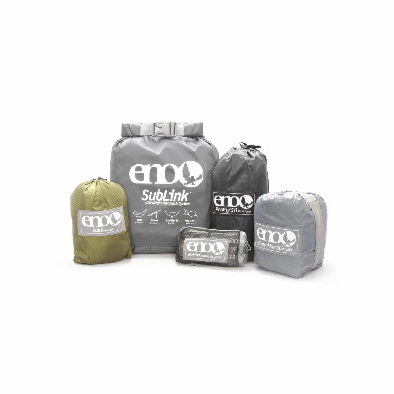 The all-inclusive and ultralight ENO SubLink Hammock System lets you expertly hit the trail with everything you need to stay totally dry and bite-free. With its quick and easy knot-free setup, you’ll be prepared for anything Mother Nature throws your way.