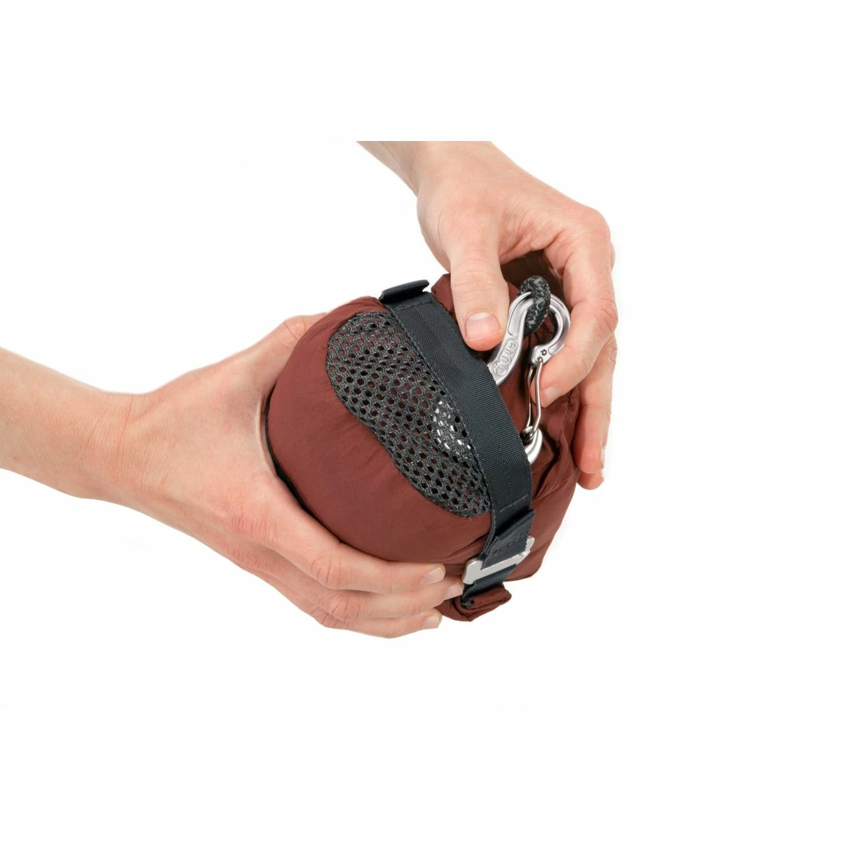 - Rolltop stuff sack integrates at carabiner for faster setup and easier take down