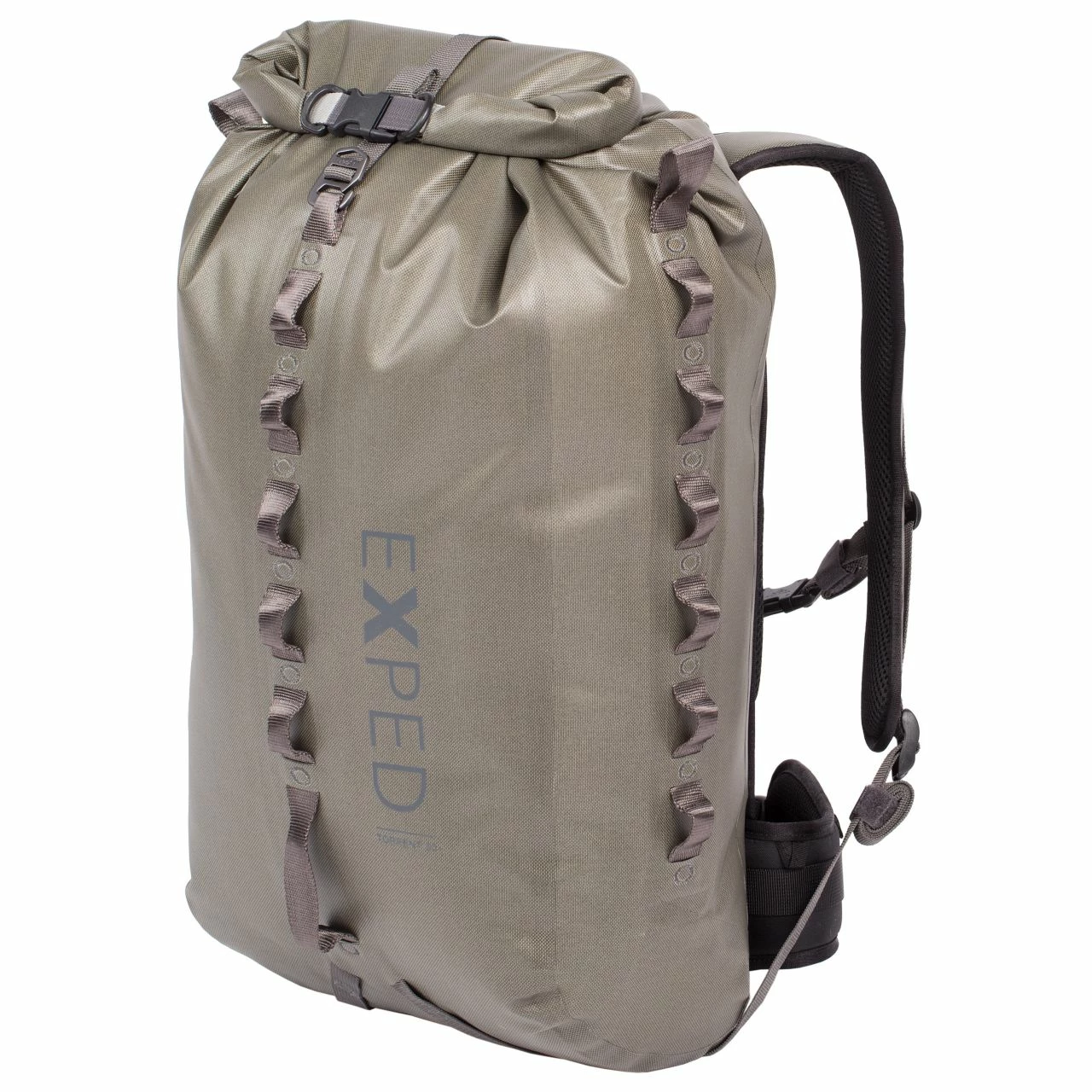 The Exped Torrent 30 is a gear-swallowing, super-durable workhorse pack that will go nearly anywhere in any conditions. It has been used for canoeing and kayaking, rafting, sailing, day hiking, canyoning, mountaineering, all-weather overnight backpacking, caving, bikepacking, travel, commuting, multi-pitch rock climbing, ice climbing and a variety of professional outdoor uses. Along the way, it has been hauled, lowered, dropped, dragged, overloaded, soaked, frozen and just plain abused.