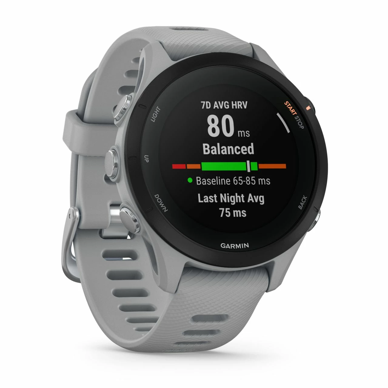 Run at a higher level with the Garmin Forerunner 255S. This running smartwatch helps you train and recover smarter with training status, multi-band GPS and daily suggested workouts that adapt to your performance and goals. Plus, other new features — such as race widget — help you plan your race-day strategy, and morning report with HRV status reveals your overall health alongside the day ahead. And with up to 12 days of battery life in smartwatch mode, you can get a full picture of your wellness — from sleep to training — whether you’re cycling, running, preparing for a triathlon or something else with more than 30 activity profiles.Â