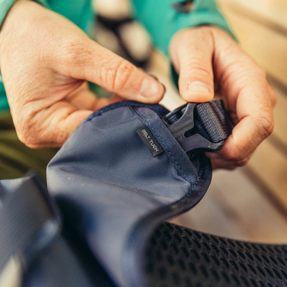 • 3D-suspended lumbar pad with tuck-away webbing hipbelt