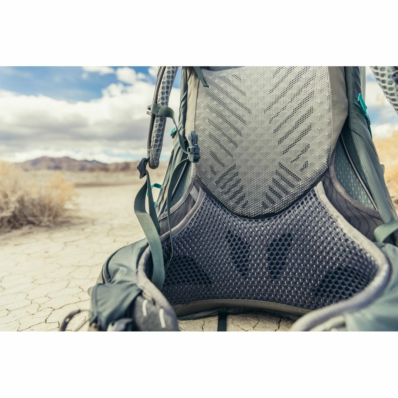 - Front oversized stretch mesh pocket with multiple webbing attachment points
