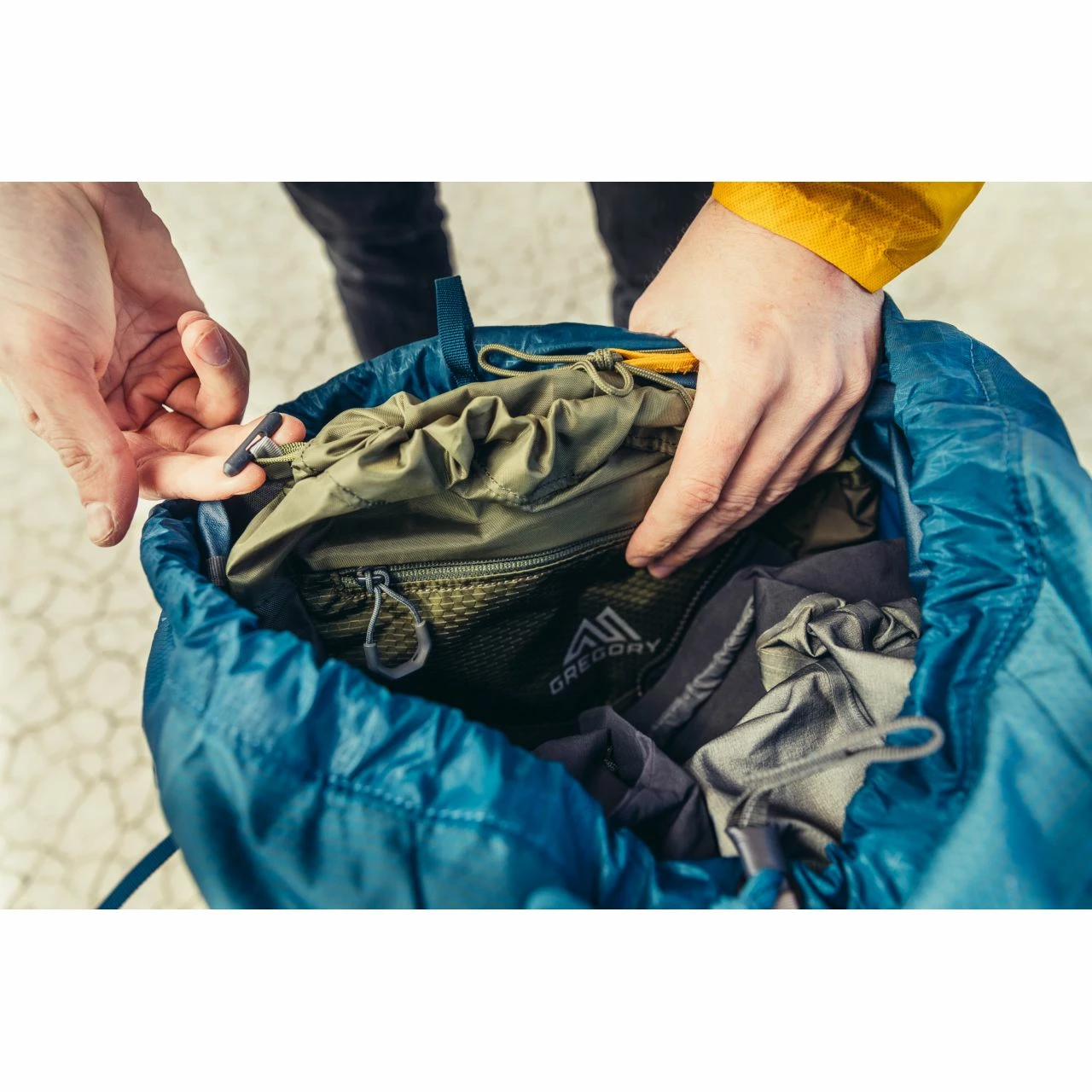 - Zippered bottom sleeping bag compartment with a removable divider that doubles as a lightweight top flap