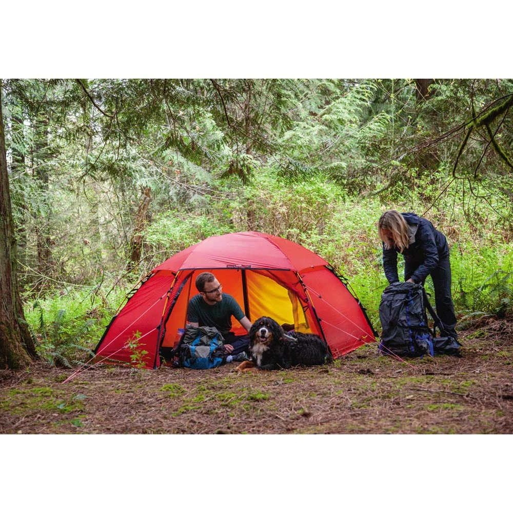 The three-person Hilleberg Allak 3 is impressively strong, remarkably light and fully freestanding. Like the popular two-person Allak 2, the Allak 3 boasts two entrances and two integrated vestibules, and is part of Hilleberg’s all-season Red Label series: tents that prioritize lighter weight, but are plenty strong for challenging backcountry weather conditions that can surprise you year-round. The Allak 3 will easily accommodate three people and their gear.