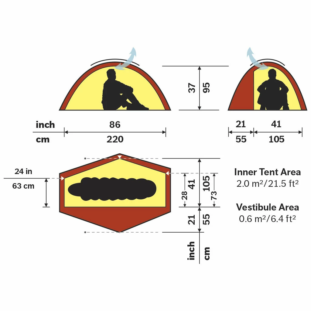 • Adjustable roof vent can be closed with a snow-proof panel, and is accessible from inside the tent.