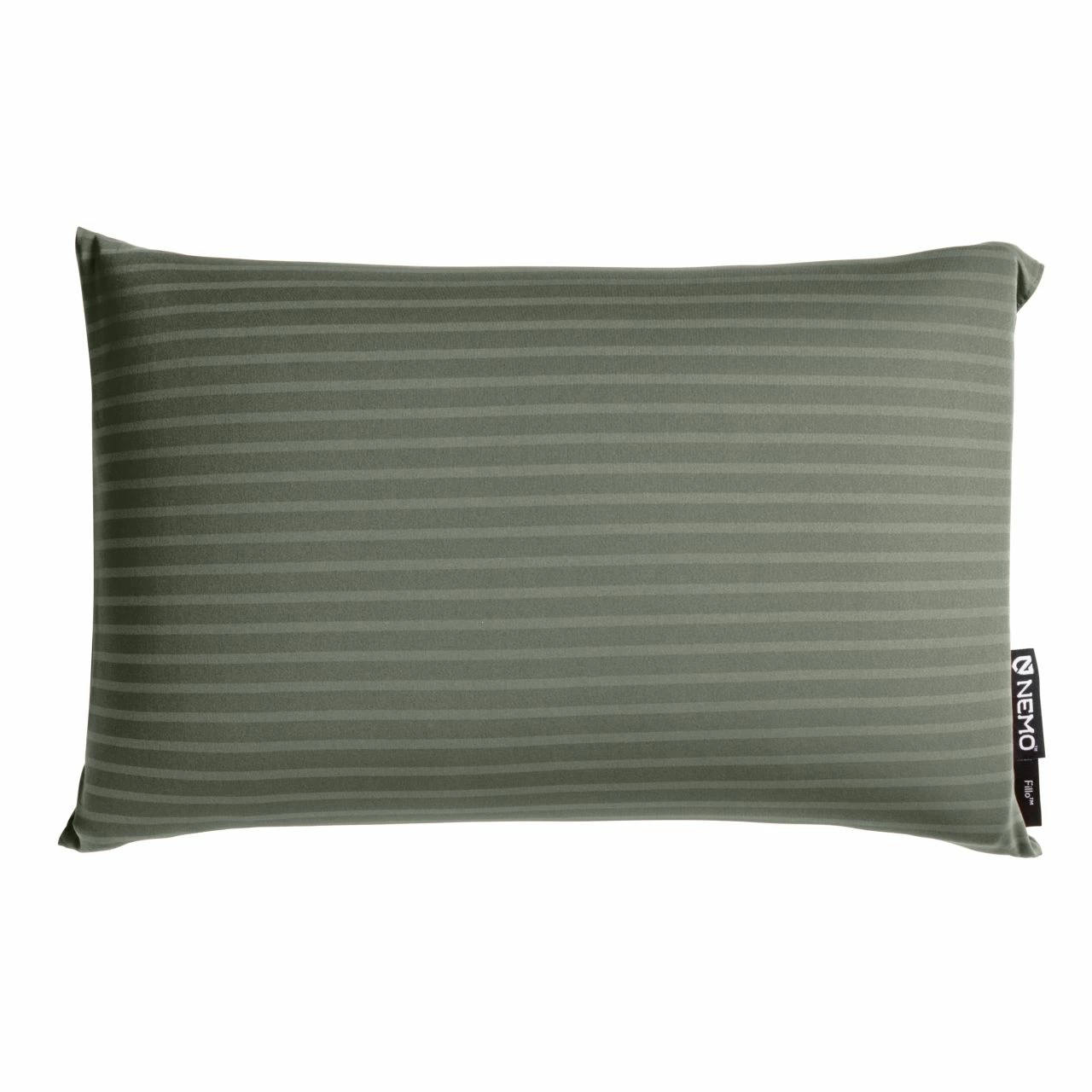 The award-winning Fillo backpacking and camping pillow brings clever design to an often-overlooked piece of gear: the humble camp pillow. NEMO redesigned the classic pillow, using a combination of a baffled air cell, thick luxury foam, a soft, washable microsuede or jersey cover, and an ergonomic valve. The result is a pillow that is soft and yielding like your pillow at home, feels big when cradling your head, yet packs surprisingly small.
