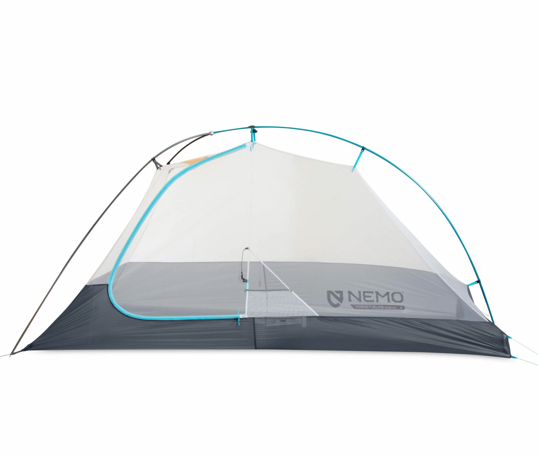 The Elite moniker means NEMO has examined every detail of this tent for weight savings and performance enhancement. The poles are top-shelf DAC Featherlite with DAC hardware. Every stitch, cord, and webbing detail are optimized for weight and strength. Its Nightlight Pocket™ headlamp diffuser adds a warm glow at night without the weight of built-in lighting. And the patent-pending Flybar™ volumizing pole clip brings headroom to the interior volume without adding unnecessary ounces. Hornet Elite OSMO™ also features the convenient new Gatekeeper™ door tie-back and Divvy Cube™ rectangular stuff sack that nests more efficiently in your pack and allows you to split the weight with a partner. By driving technology and design forward, NEMO’s Hornet Elite OSMO™ is a maximalist approach to minimalist design.