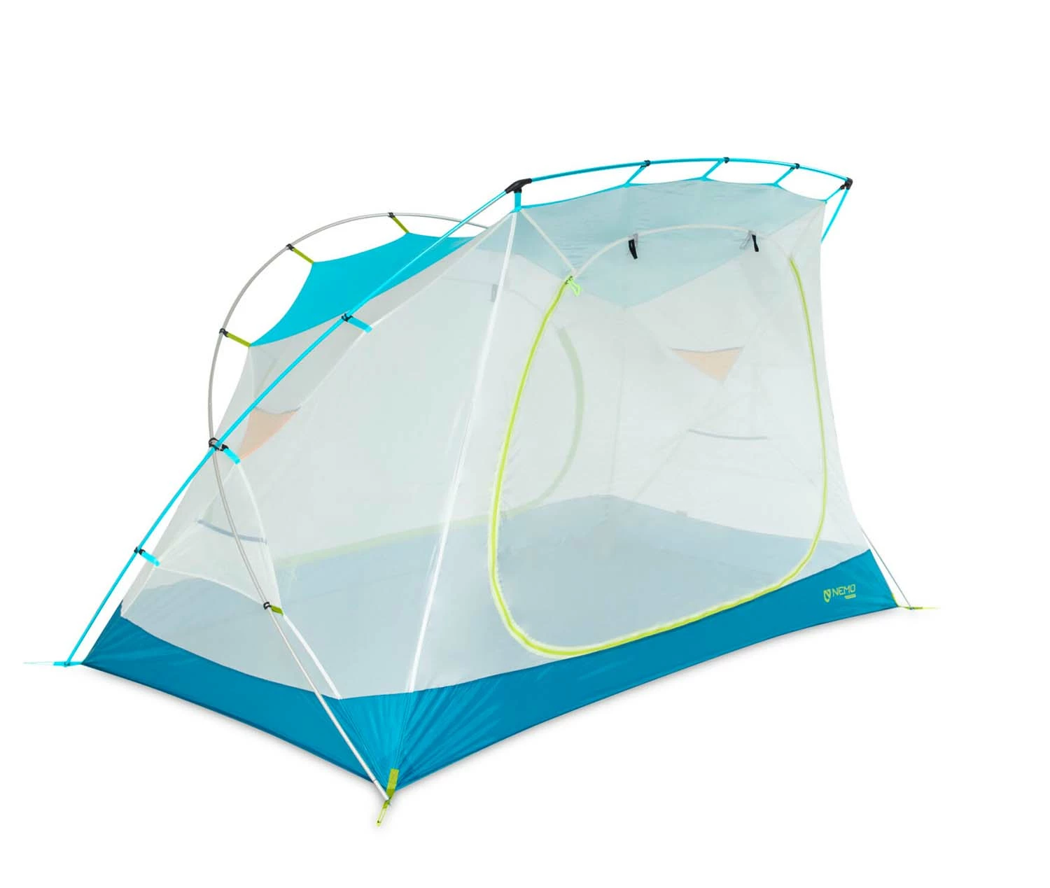 Whether your adventures require a tent, a screenhouse, a sunshade, or all three, the NEMO Switch 2P can easily transform to handle all of them. With the inner tent deployed and fly attached, it makes a very comfortable abode, with near vertical walls and copious headroom. Pop the fly off on a sunny day, and you have a perfect screen room for setting up a couple of NEMO Moonliteâ„¢ chairs and a Moonlanderâ„¢ table for sharing a cheese board.