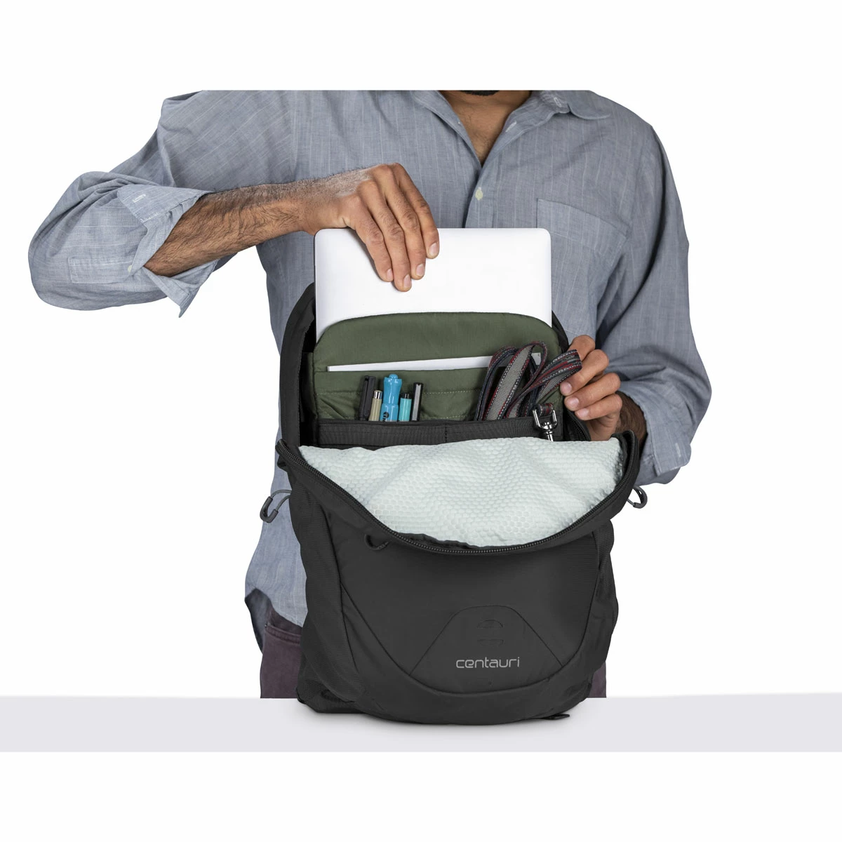 Reliable and refined, this functional 22-liter pack is fully capable of carrying your everyday essentials anywhere you need to go. An adjustable sternum strap, breathable backpanel and soft harness make for a pleasant carrying experience—commute to the office, campus or your local river boat meeting in comfort and style. Featuring main compartment organization for day-to-day necessities, a padded laptop sleeve, easy-access mesh side pockets and a loop for your tail light. The Centauri is a daily gear hauler that will help keep you on the go and on time for all of life’s events with the fit, comfort and organizational solutions you’ve come to expect from Osprey.