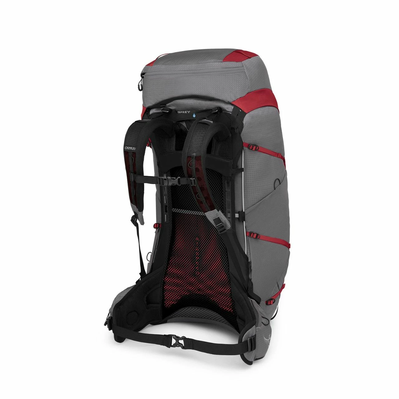 3D-tensioned breathable mesh backpanel ensures supportive fit. Silicone print on lumbar fabric enhances hipbelt grip.