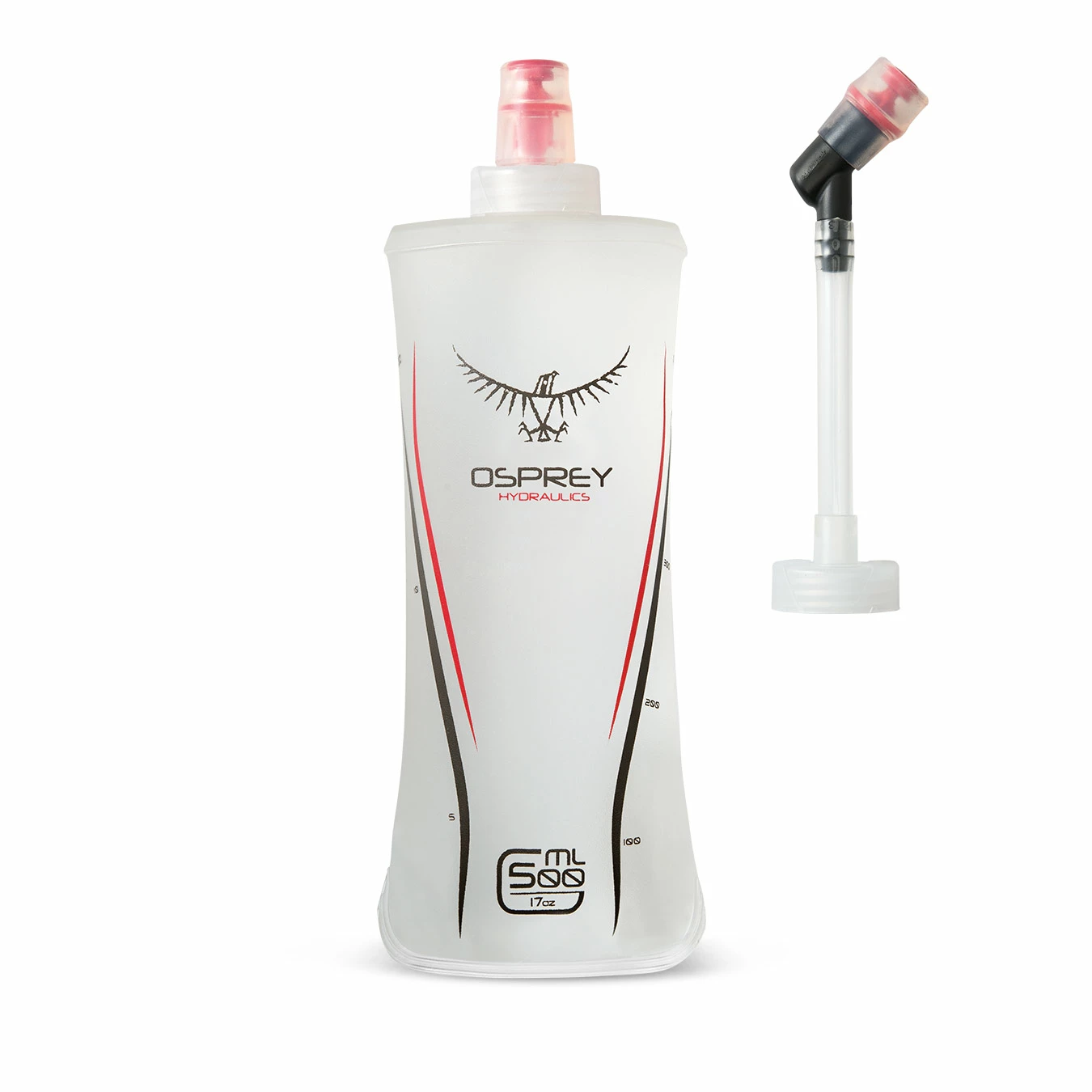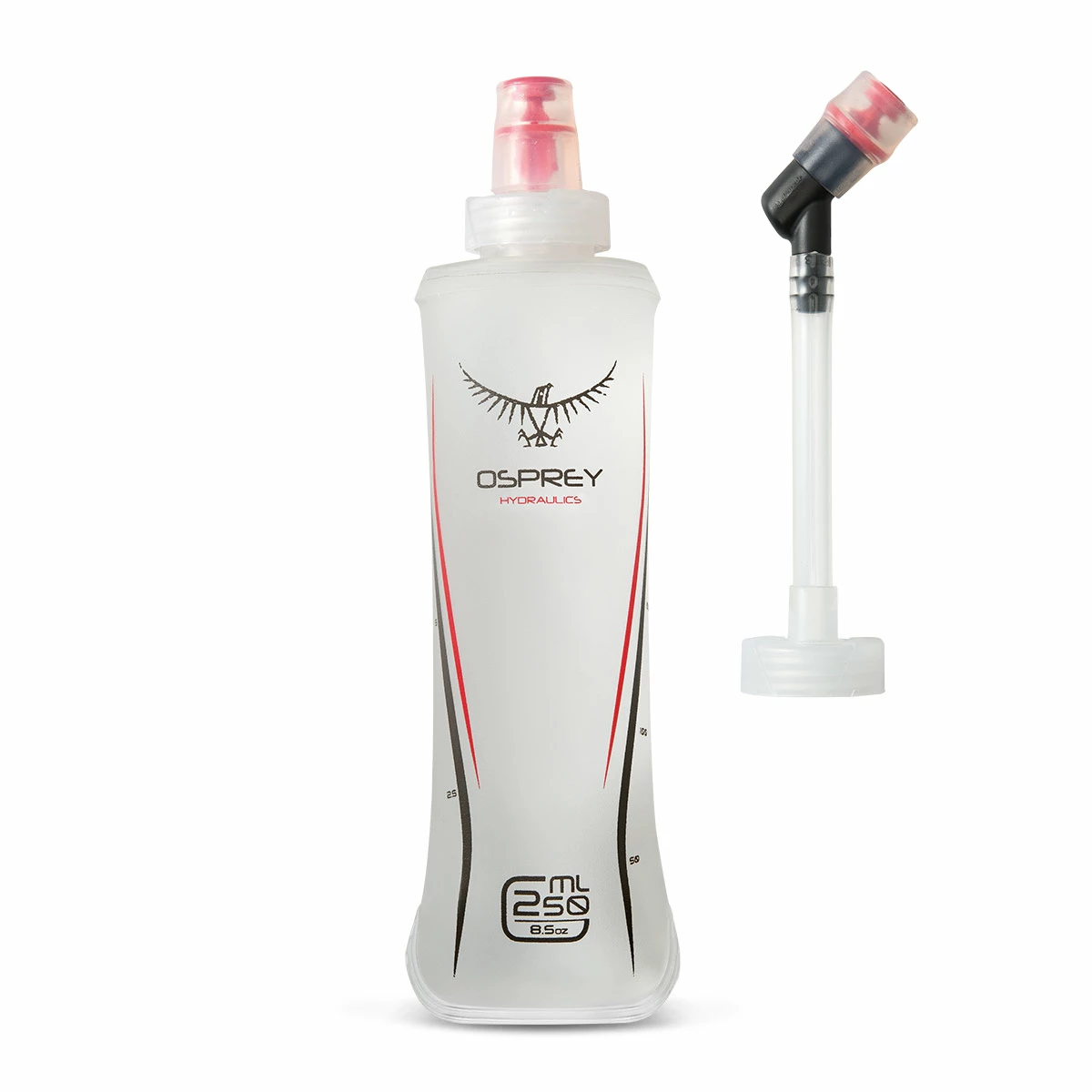 Osprey Hydraulics Soft Flasks are an add-on or aid replacement for Duro and Dyna vest-pack harness pockets. The Duro and Dyna handheld accommodates the 250 mL version.