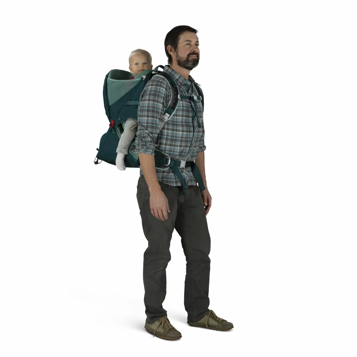 Share everyday adventures with the Osprey Poco LT. Small and safe, this lightweight child carrier is ideal for tight stores, busy sidewalks and shorter hikes. Its patent-pending frame folds flat to store small and out of the way. Featuring ventilated AirScape® suspension, adjustability to fit a variety of body shapes and a built-in UPF 50 sunshade. TUV-certified and made sustainably with bluesign®-approved materials and PFC-free DWR.