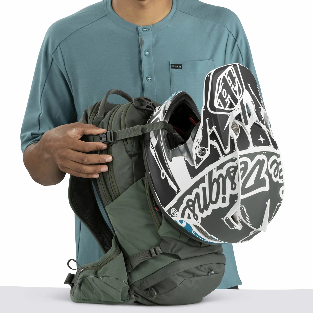 Made to haul all the gear you need – but flexible enough to slim down for shorter rides – the Raptor 14 is Osprey’s premium pack for mountain bikers who demand top quality from their gear. Don’t like how hydration packs feel over gnarly terrain? Neither did Osprey. So they designed shoulder straps in the shape of wings that curve the same way you do when you’re in riding position. An AirScape suspension and backpanel provide a close-to-body carrying experience and elevate comfort and stability to unprecedented levels, while still allowing for dynamic body movement. An included 2.5-liter reservoir with direct-zip hose access ensures straightforward loading, while a tool roll organizes the ingredients to get you moving again should you have any trailside troubles. Standard helmets attach with the LidLock system and side compression straps will fit your full face helmet.