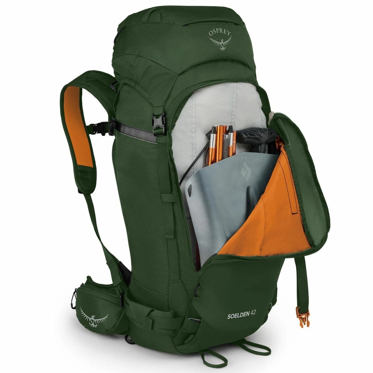Big days in the backcountry require planning, plenty of gear, and quick access to avalanche safety essentials. The Soelden 42 is Osprey’s largest technical backcountry ski pack designed with hut tours in mind.