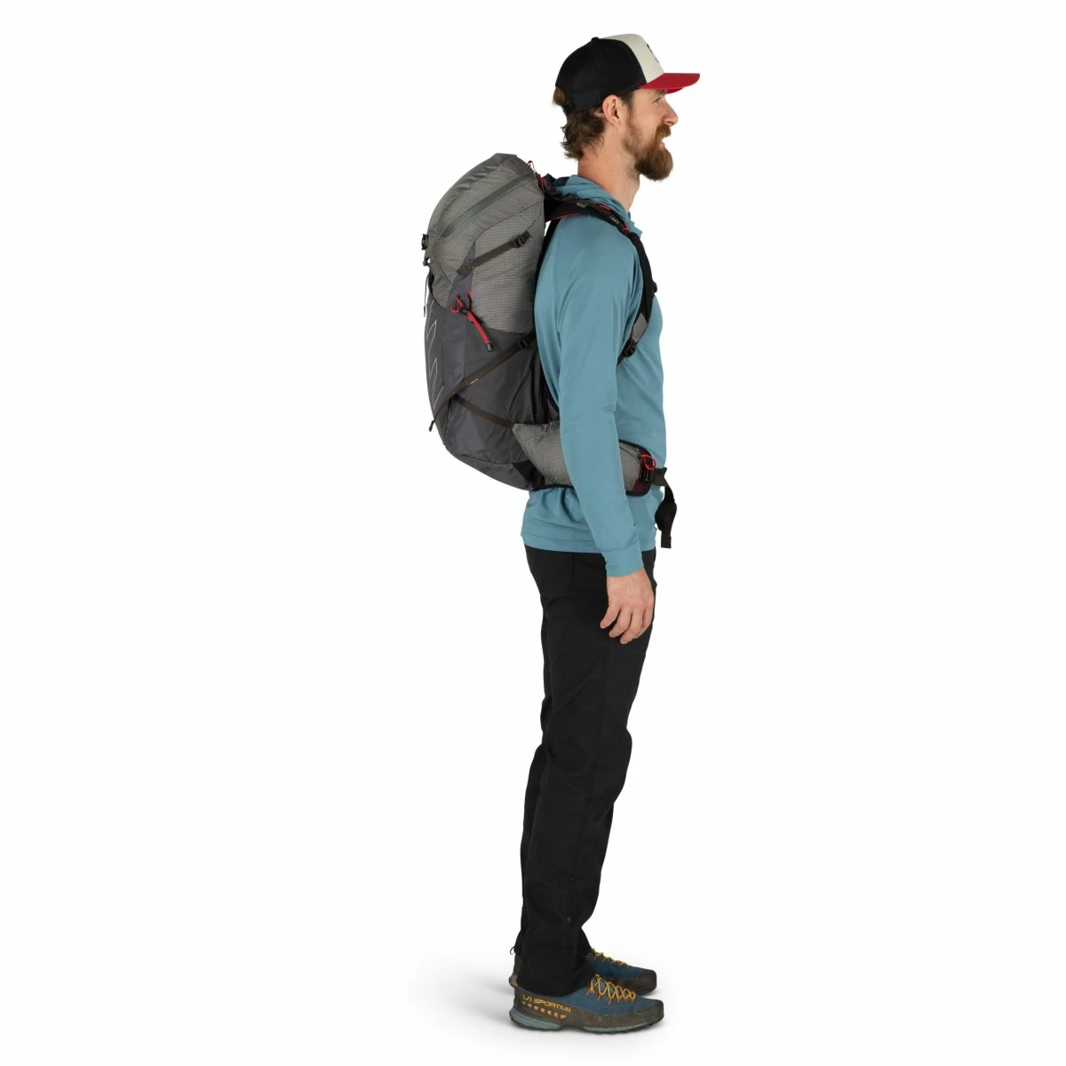 Heading out for a demanding day hike or light and fast overnighter? Either way, the Osprey Talon Pro 30 is up to the challenge. Light but tough Nanofly® fabric keeps the weight in check. An injection-molded backpanel and continuous-wrap harness and hipbelt move with you over challenging terrain. This top-loading pack features a hydration reservoir sleeve, dual zippered hip pockets and attachment points for ice axes and trekking poles. Constructed with ultra-high-molecular-weight polyethylene ripstop, GRS-certified recycled materials and PFC-free DWR coating.
