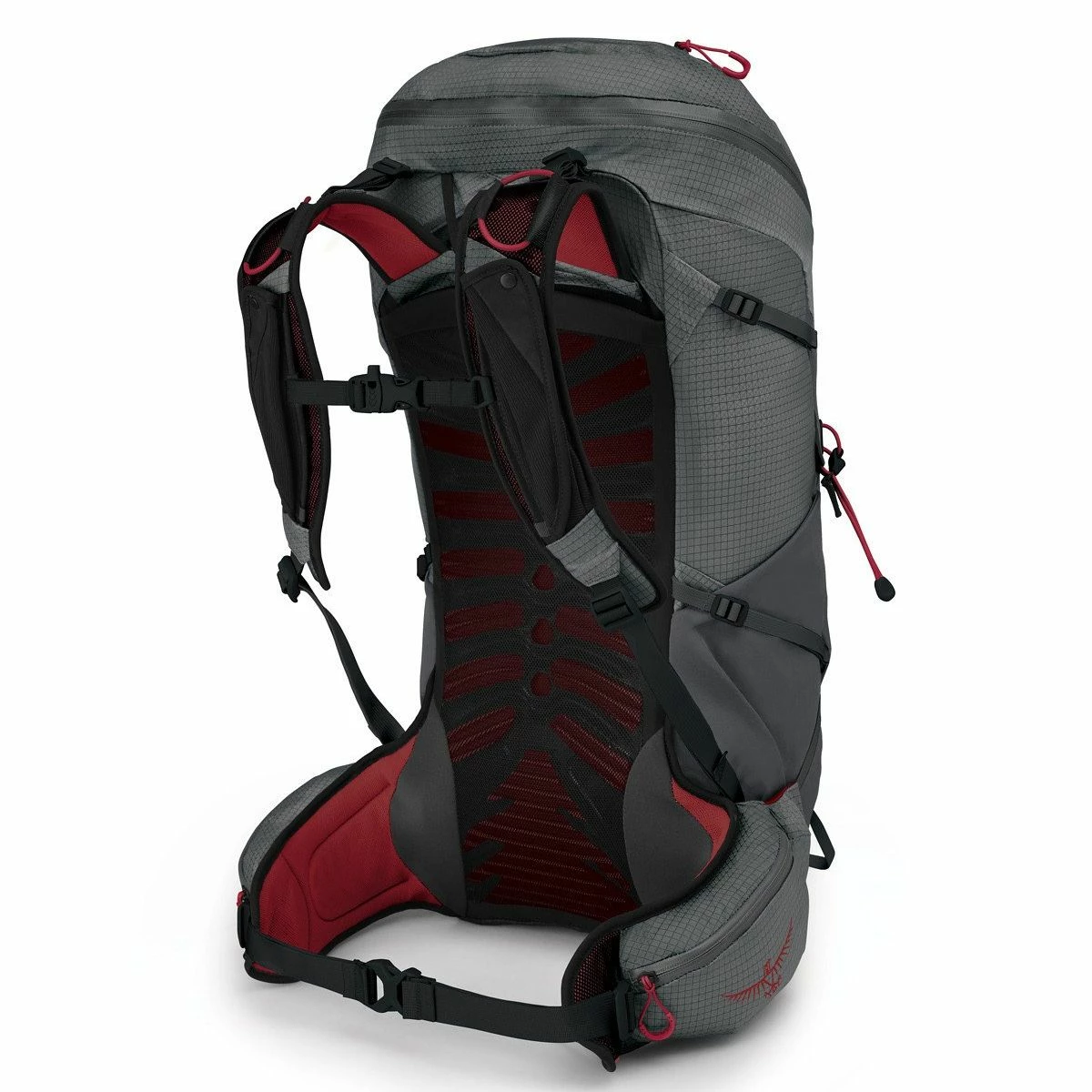 — Spacermesh over die-cut foam provides breathable, comfortable contact surface Crossbody ErgoPull hipbelt system to pull lumbar into body