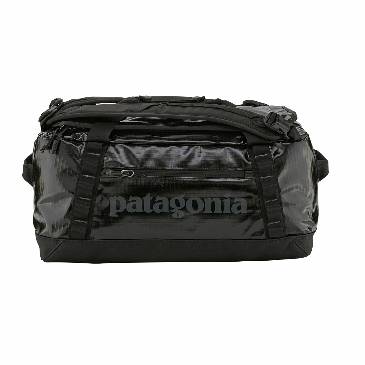 The smallest Black Hole duffel. Tough and highly weather-resistant, it keeps your gear protected and easily accessible. The main compartment opens via a zippered U-shaped lid, which has a pair of zip-closing mesh pockets on the underside for easily lost items like your lottery ticket. A zippered exterior pocket holds all the stuff you need quickly. The padded bottom panel adds structure and helps cushion the load when your duffel gets the baggage-handler treatment. Carrying options include padded, removable shoulder straps for a backpack carry, webbing handles with a snap closure, and haul loops at either end for linking multiple bags. Daisy chains let you lash additional gear to the outside. Made from burly, 900-denier 100% postconsumer recycled polyester ripstop with a TPU-film laminate and lined with 200-denier 100% recycled polyester with a polyurethane coating. Both fabrics have a DWR (durable water repellent) finish.