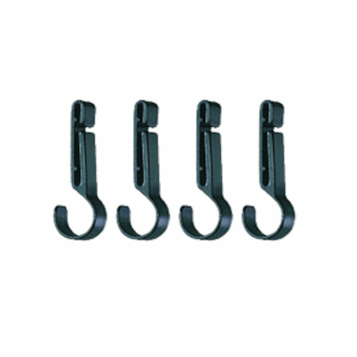 Four headlamp clips for mounting a headlamp, compatible with thin-edged helmets that lack integrated headlamp clips.