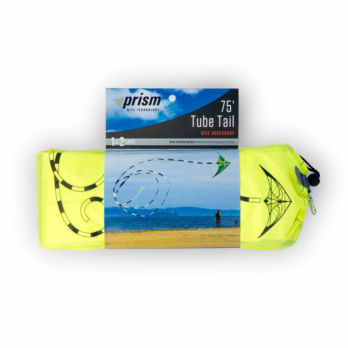 The Prism 75-foot Tube Tail is black/white striped with a neon yellow tip for a mesmerizing show in the sky. Kite sold separately.
