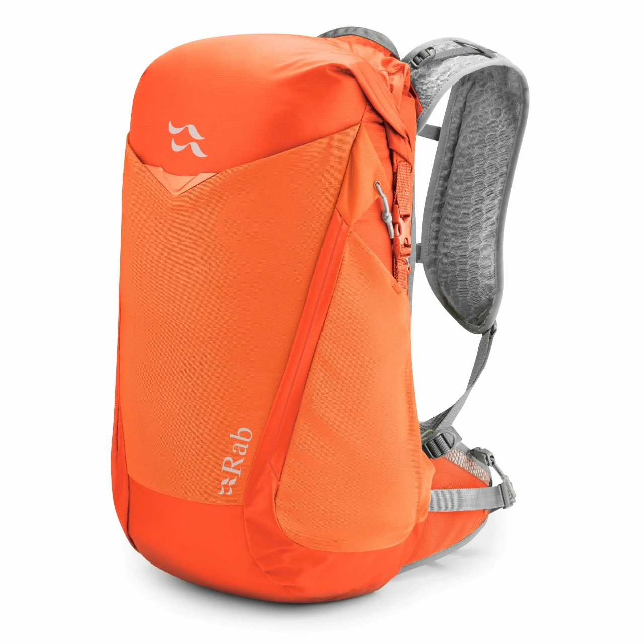 The Rab Aeon Ultra 20 is the ideal day pack for committed mountain runs and fast hiking adventures in all weather, with enough volume for a summer bivi or bothy overnight. Built with tough, water-resistant fabric, taped seams and roll top closure, the Aeon Ultra seals out the elements, for those who get out and get it done. On-harness walking pole attachment and stretch side stash pocket enable quick access to kit for adapting to oncoming terrain or variable conditions. Hydration compatible with space for a 3L bladder with multiple harness pockets for storing snacks, gels, or flasks, you can stay refreshed without needing to stop.