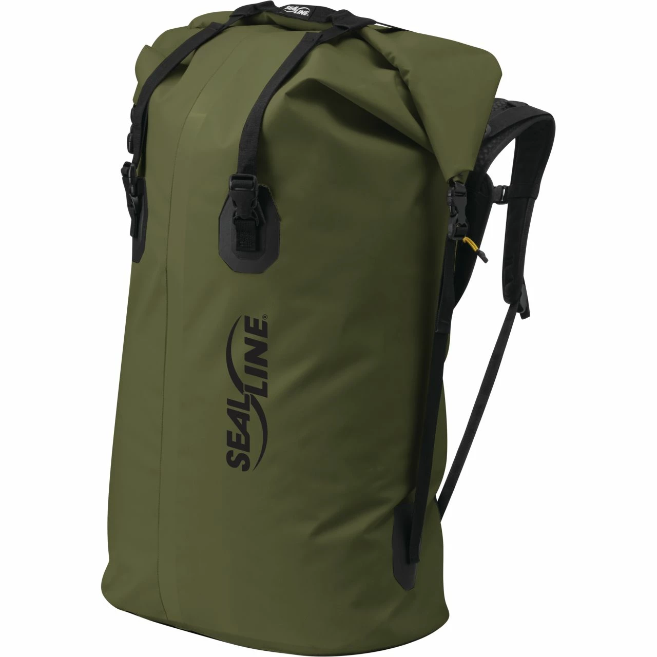 The SealLine Boundary Dry Pack is a simple, durable waterproof portage pack with an updated suspension system designed to lighten the burden of gear-hauling whether you’re paddling, fishing, rafting, camping or traveling on trains, buses and burros. Padded shoulder straps add carrying comfort and can also be detached for travel or use as a dry bag. The updated DrySeal™ roll-top closure and side compression straps make it easy to achieve the optimal seal. The Boundary Pack is also available in 35L and 115L sizes.