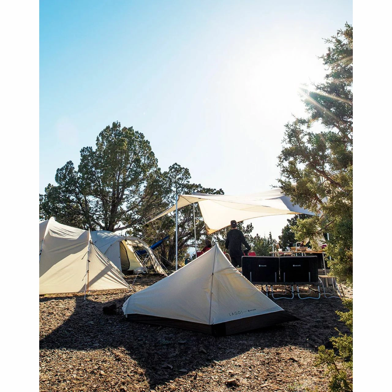 The Snow Peak Lago 1 in Ivory is a one-person tent designed for backpacking. The Lago 1 is minimalist and lightweight. It features an inner and outer wall for durability and protection from the elements and mesh panels for ventilation.