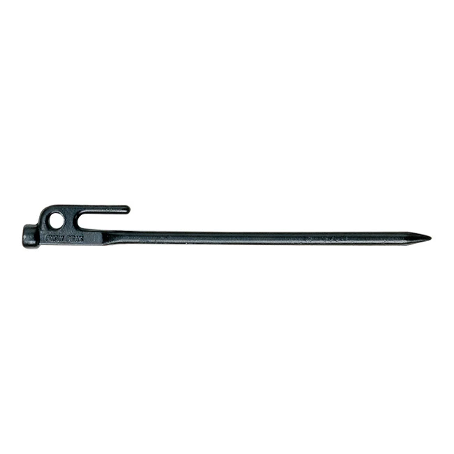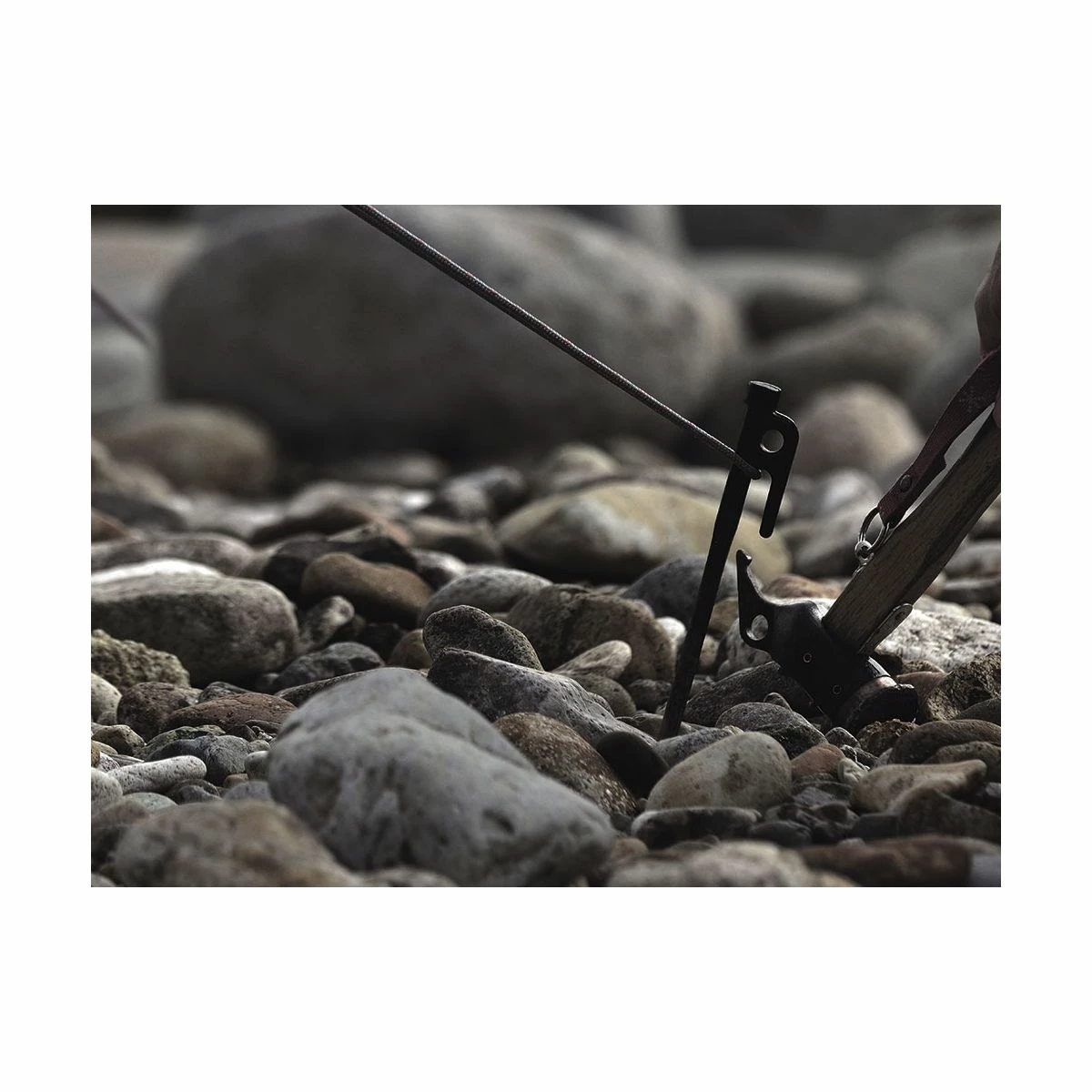 These Snow Peak stakes are the strongest we’ve found. They are impossible to bend. The 55c forged steel makes it possible to drive this stake into asphalt. The solid stake ties your tent or tarp securely to the ground.